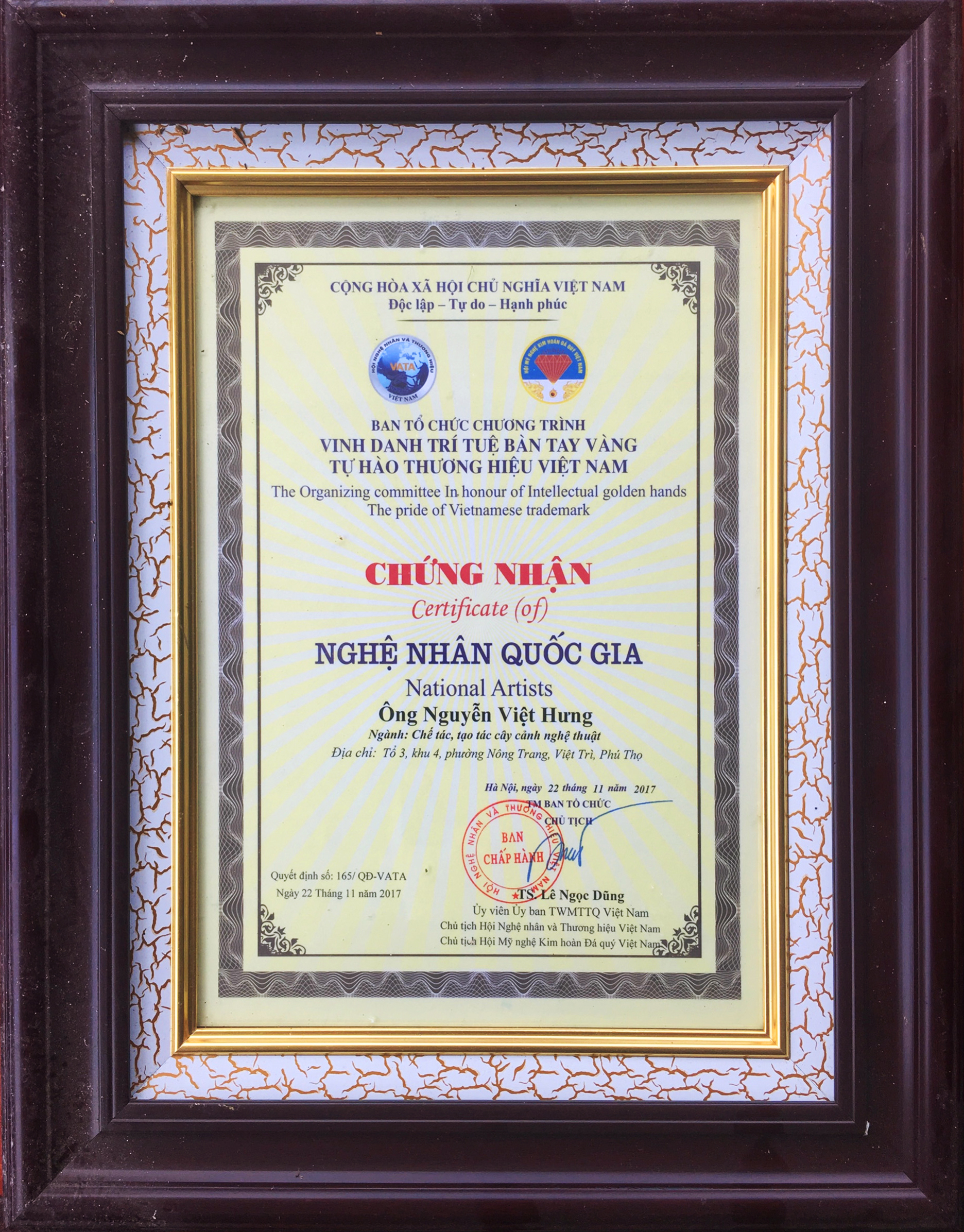 Người chỉ đạo thiết kế - thi công chính của Cây Xanh Nam Điền là anh Nguyễn Việt Hưng, một nghệ nhân tận tâm, yêu nghề, giàu kinh nghiệm và rất am hiểu về văn hóa truyền thống và nghệ thuật sân vườn Nhật Bản. Anh đã được trao tặng rất nhiều giải thưởng, chứng nhận cấp quốc gia về sinh vật cảnh.