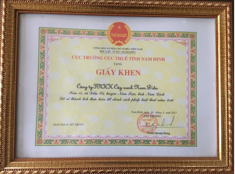 Công ty TNHH Cây xanh Nam Điền tự hào là đơn vị phát triển làng nghề, luôn luôn cũng cố và phát huy trách nhiệm xã hội của mình. Và đã được cơ quan địa phương ghi nhận: